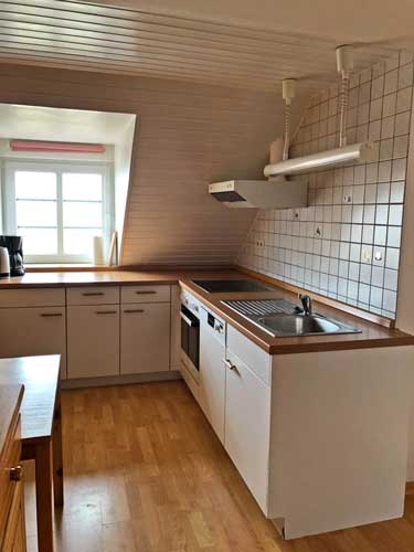 In unserem Wohnhaus befindet sich der gemütliche »Fuchsbau« – eine komfortable Ferienwohnung mit separatem Eingang. Diese für 5-6 Personen eingerichtete Wohnung bietet Ihnen auf 90qm drei Schlafräume, einen Wohnbereich, eine Einbauküche mit Geschirrspüler, ein Duschbad und ein WC extra. Im Elternschlafzimmer befindet sich zudem ein Kinderbett und ein Wickeltisch. Eine 30qm große Dachterrasse steht Ihnen ebenfalls zur Verfügung. Bettwäsche und Handtücher können auf Anfrage gestellt werden (10 Euro pro Person).
