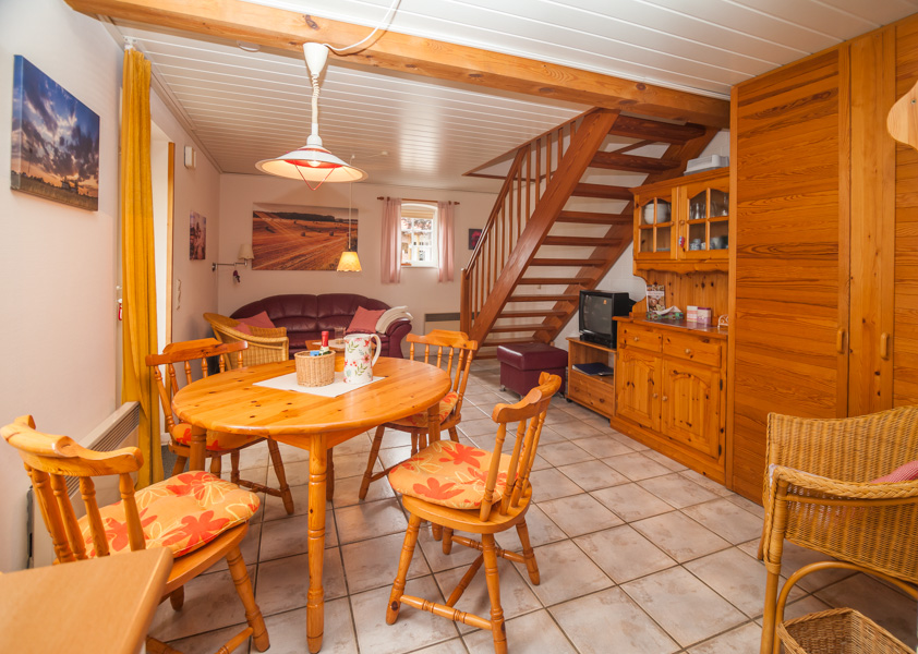 Auf unserem Hof befindet sich das Spatzennest – eine gemütliche Komfort-Ferienwohnung auf 2 Etagen (60qm), Einbauküche mit Geschirrspüler sowie 3 Schlafräume (davon einer mit Wickeltisch), Duschbad, gemütlichem Wohnbereich sowie einer Terrasse. Bettwäsche und Handtücher können auf Anfrage gestellt werden (10 Euro pro Person).